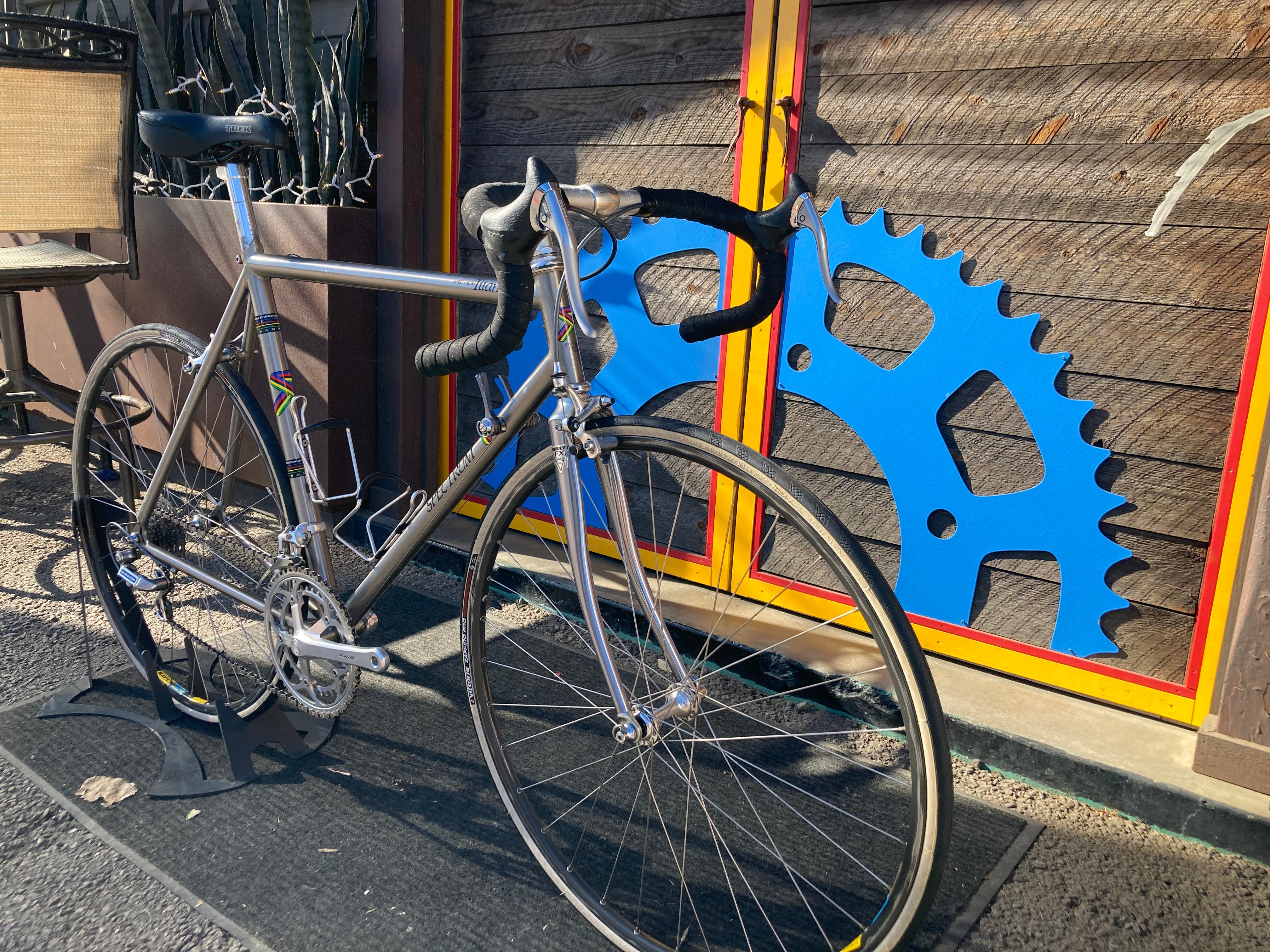 Dura Ace Hubs laced in Mavic Open 4 hoops Wrapped with Vittoria Zafiro's 700x25