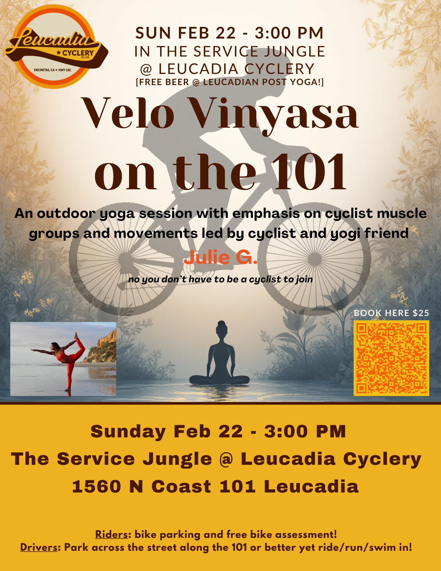 2/22/26: Yoga for Cyclists - Velo Vinyasa - 1 hr session + free beer
